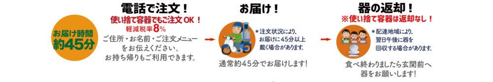 営業時間 | 電話受付 10:00~20:00 配達時間 11:00~20:00 (休憩15:00~17:00除く) |