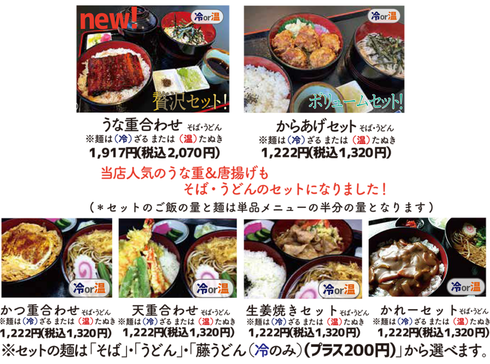 そば・うどんが選べます(藤うどんはうどんのみ)